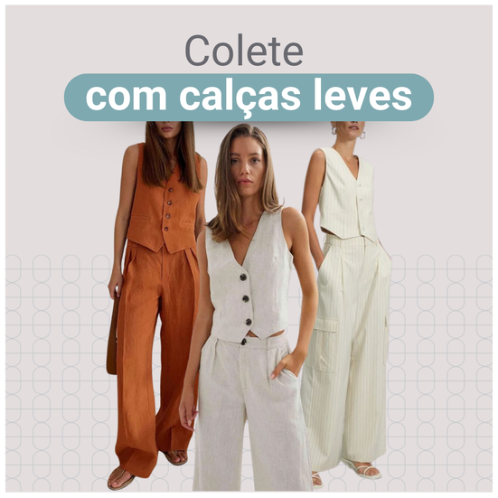 Apesar do colete sem considerado uma terceira peça, e logo associado à climas mais amenos, esse elemento que está tão em alta seguirá assim pelo nosso verão.